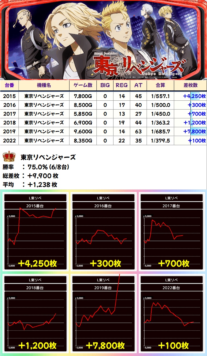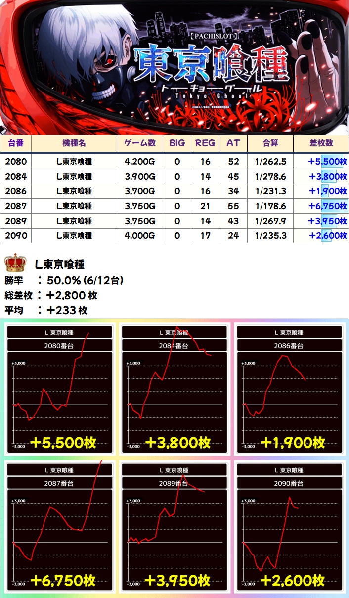 1/2系も数多くあり、主に人気機種が対象に!東京喰種や東リベは前回も高配分以上のしかけだったので、第3土曜は連続で優秀になっているこれら機種から狙いたい!