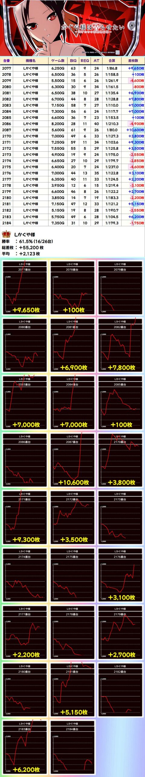 Lかぐや様 (16/26台+) ➡平均 +2,123枚