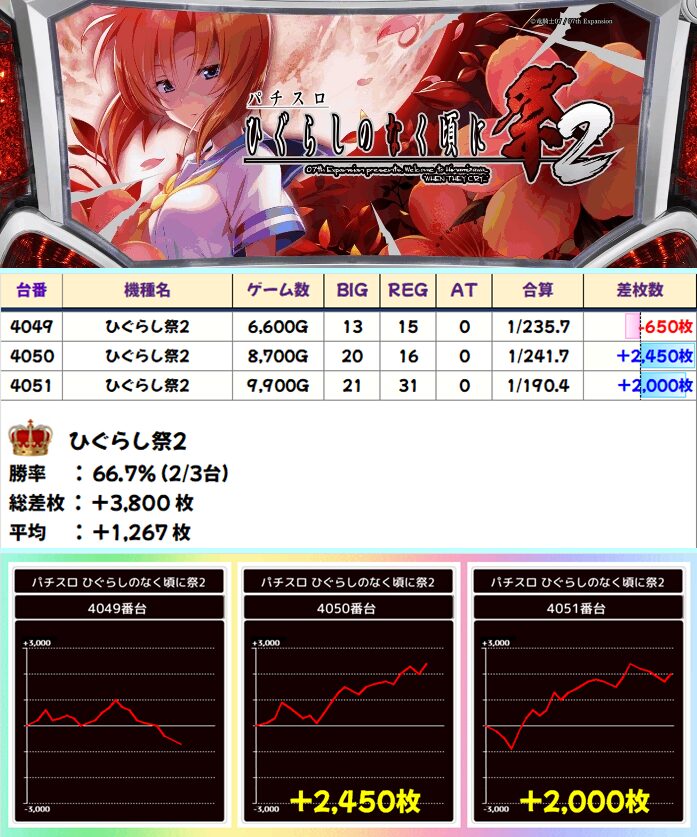 ひぐらし祭2(2/3台+)➡平均+1,300枚