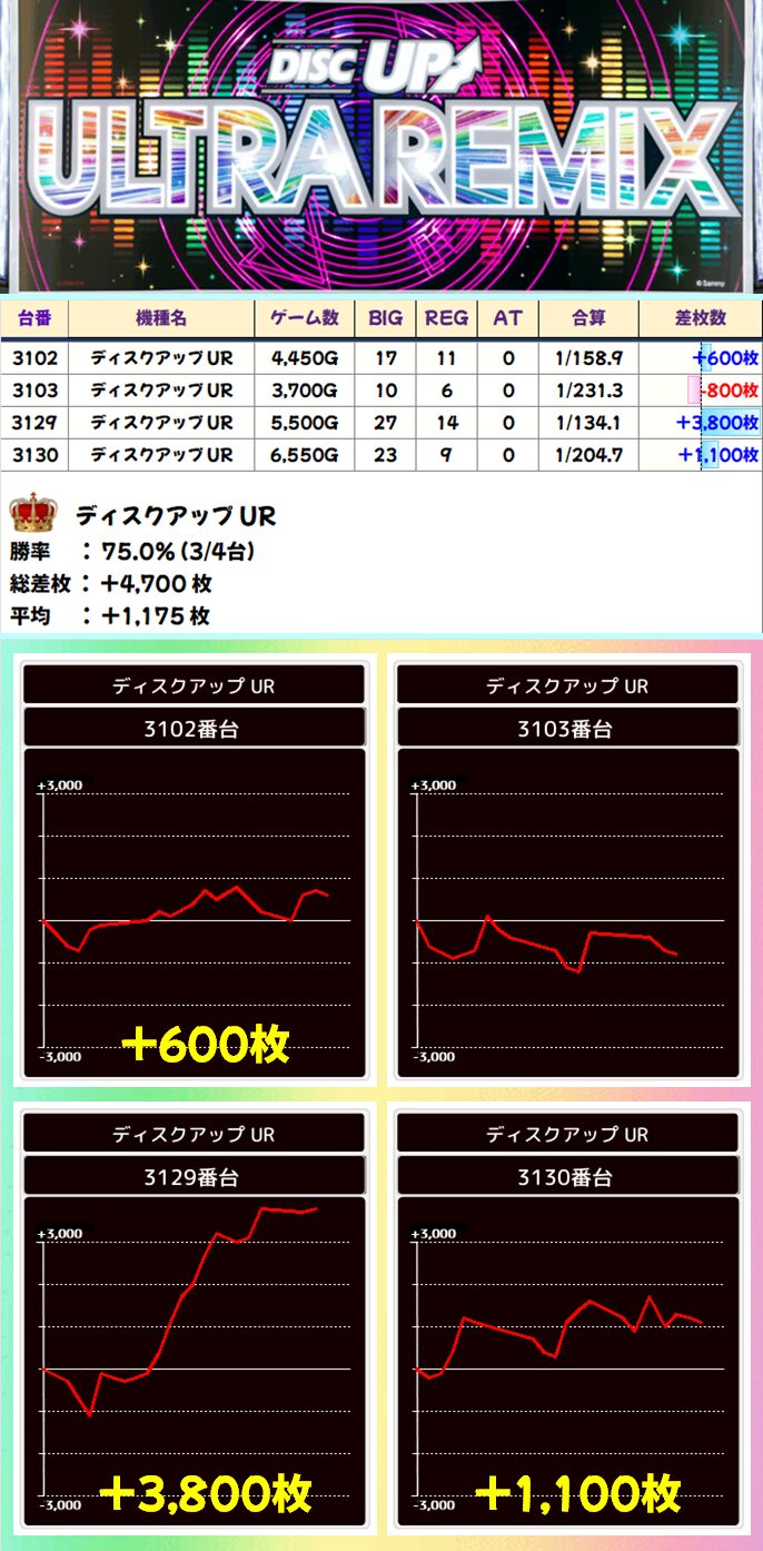 ディスクアップ UR(3/4台+)➡平均+1,225枚