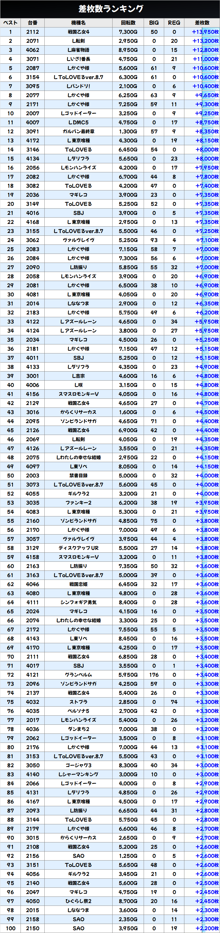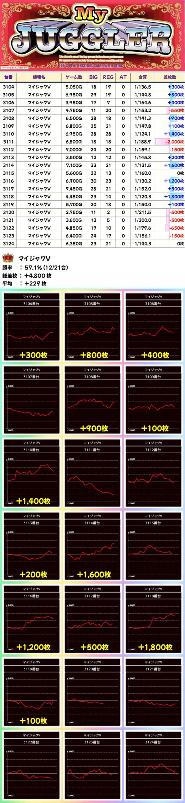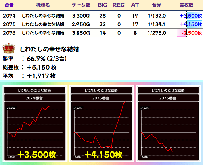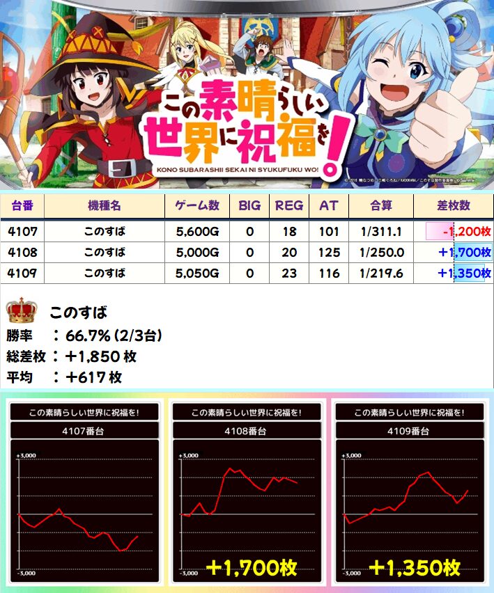 このすば(2/3台+)➡平均+267枚