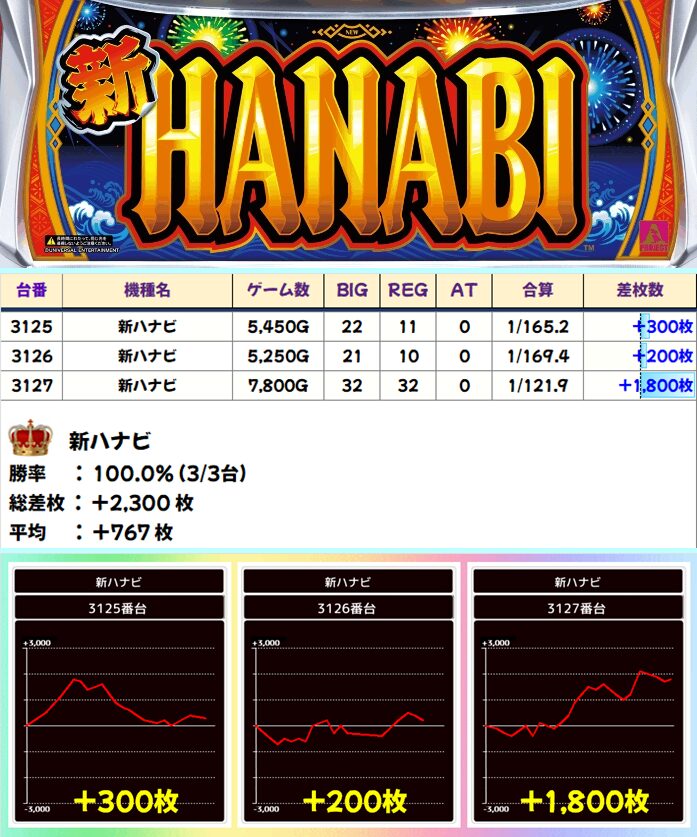 新ハナビ(3/3台+)➡平均+900枚