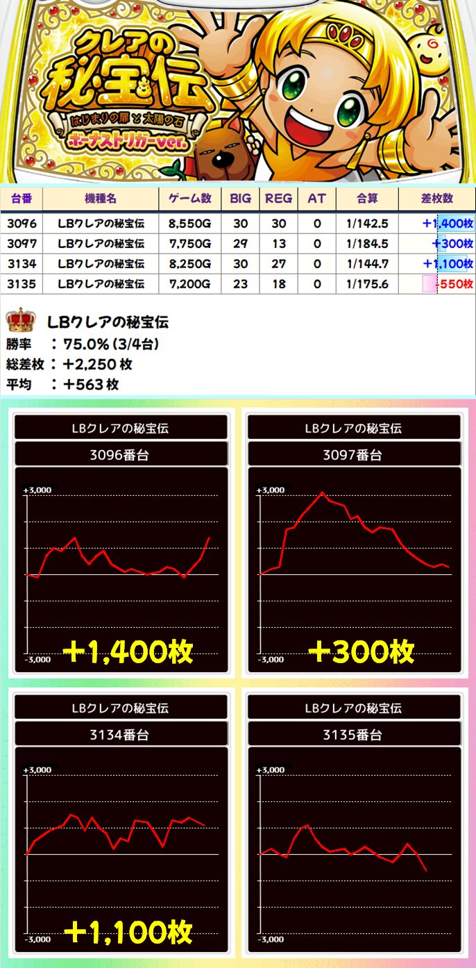 LBクレアの秘宝伝(3/4台+)➡平均+438枚