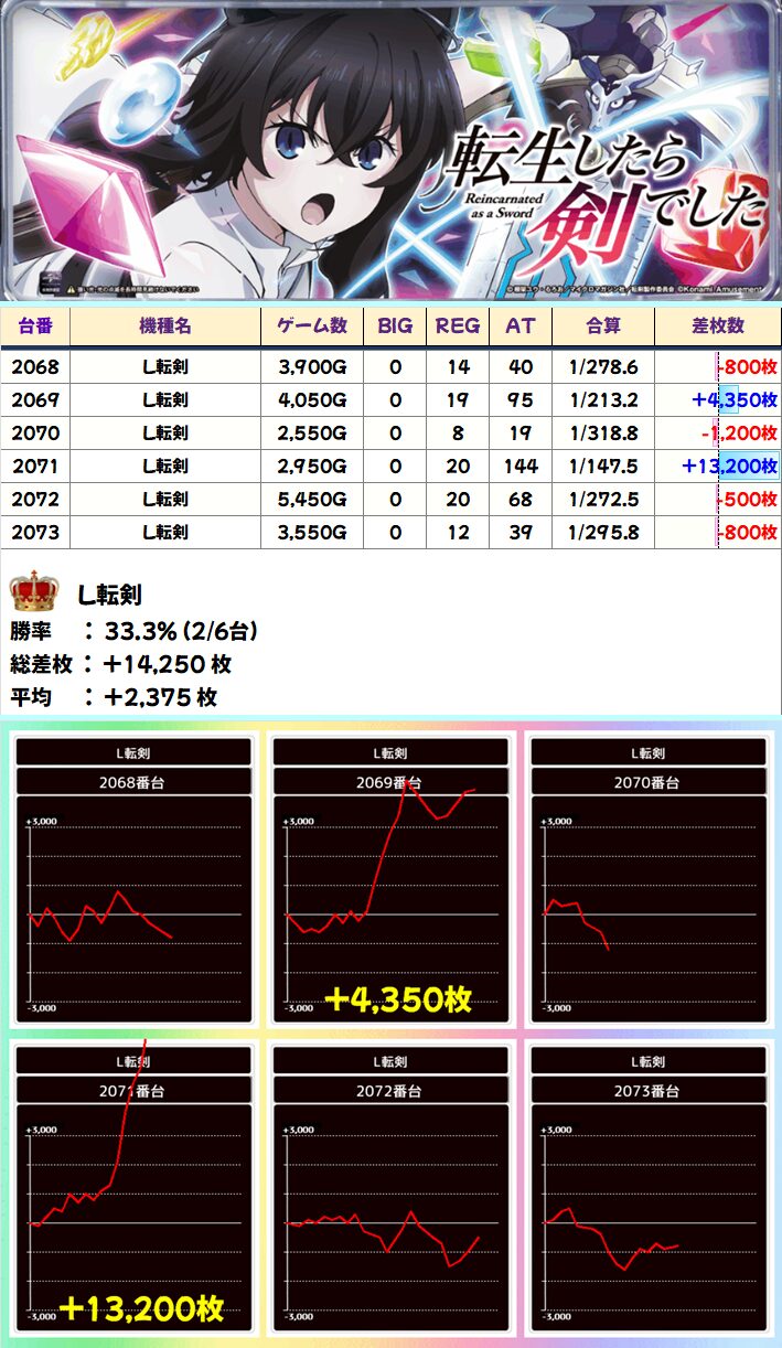 L転剣(2/6台+)➡平均+1,992枚