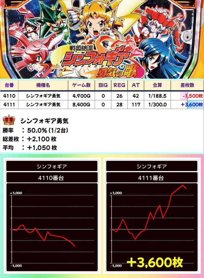 シンフォギア勇気(1/2台+)➡平均+1,050枚