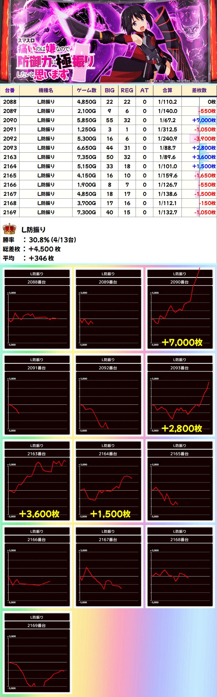 L防振り(4/13台+)➡平均+192枚