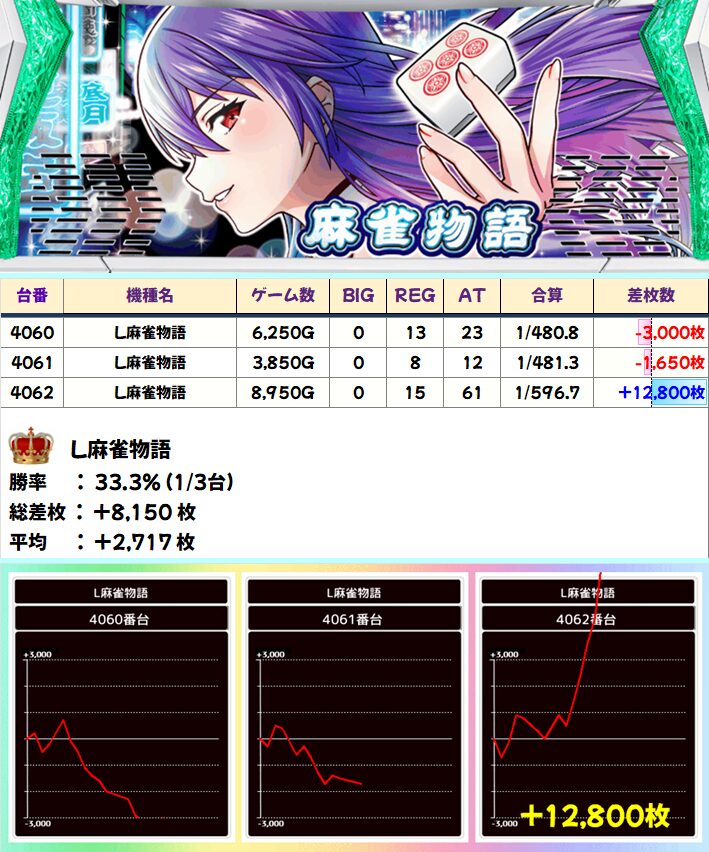 L麻雀物語 (1/3台+) ➡平均 +2,717枚