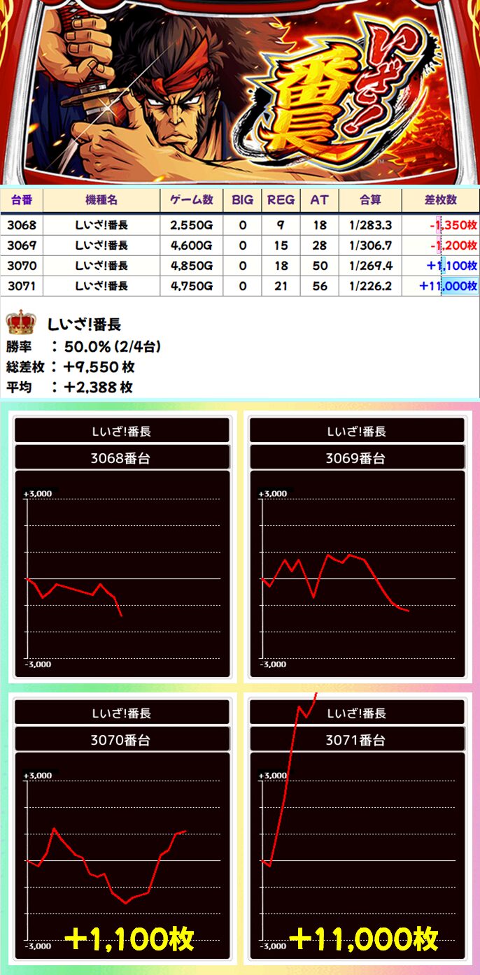 Lいざ!番長(2/4台+)➡平均+2,488枚