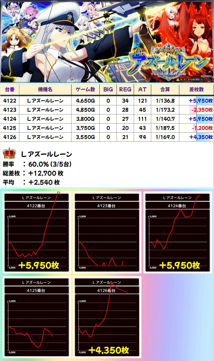 L アズールレーン(3/5台+)➡平均+2,540枚
