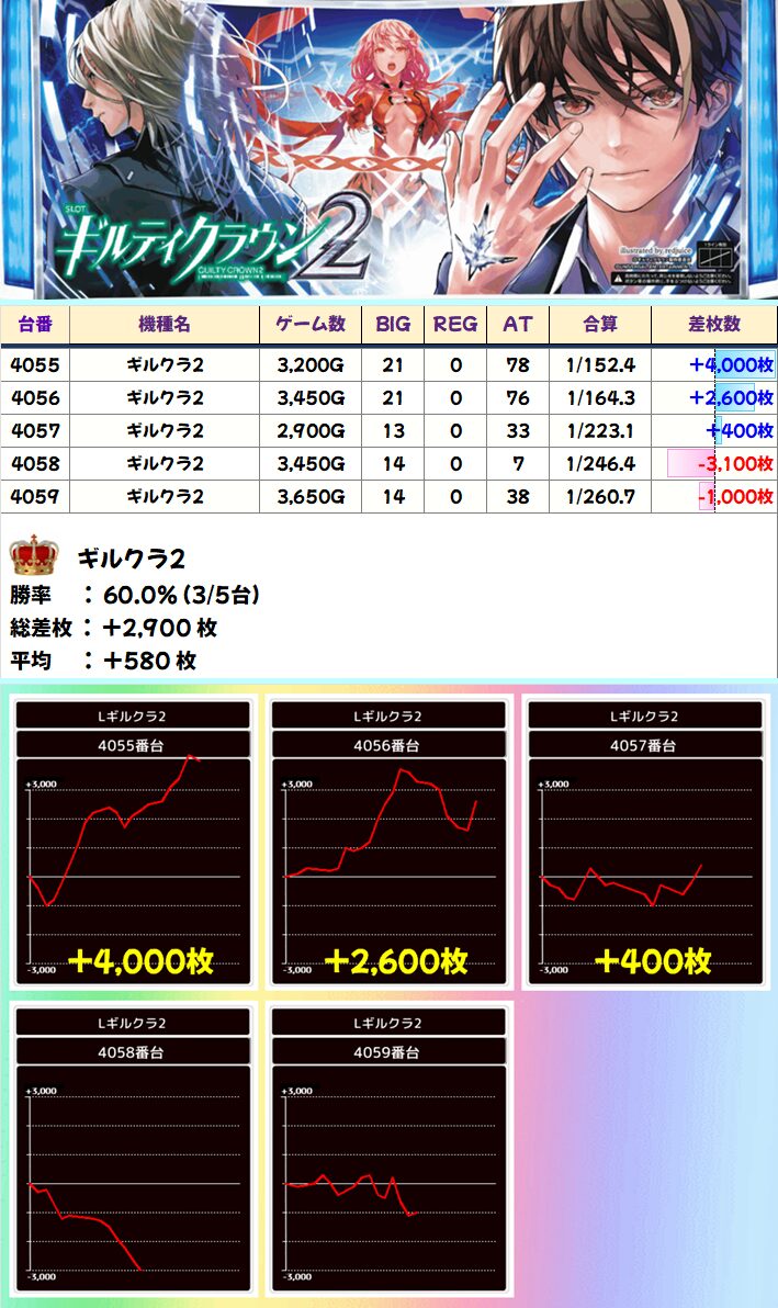 ギルクラ2(3/5台+)➡平均+580枚