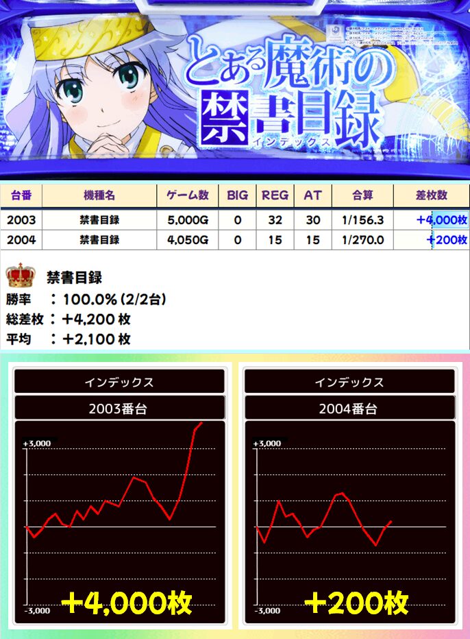 禁書目録(2/2台+)➡平均+1,150枚