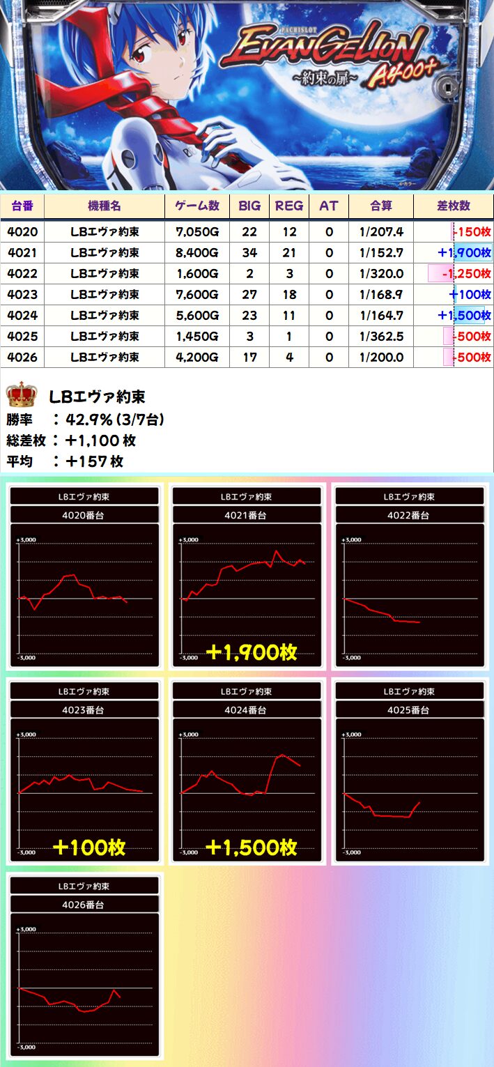 LBエヴァ約束(3/7台+)➡平均+214枚