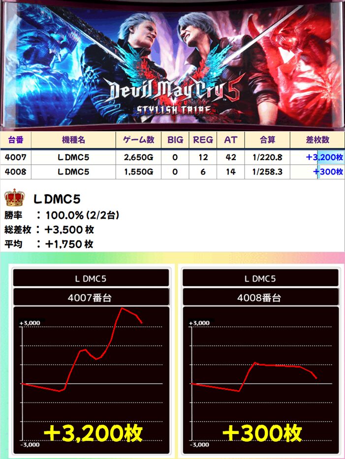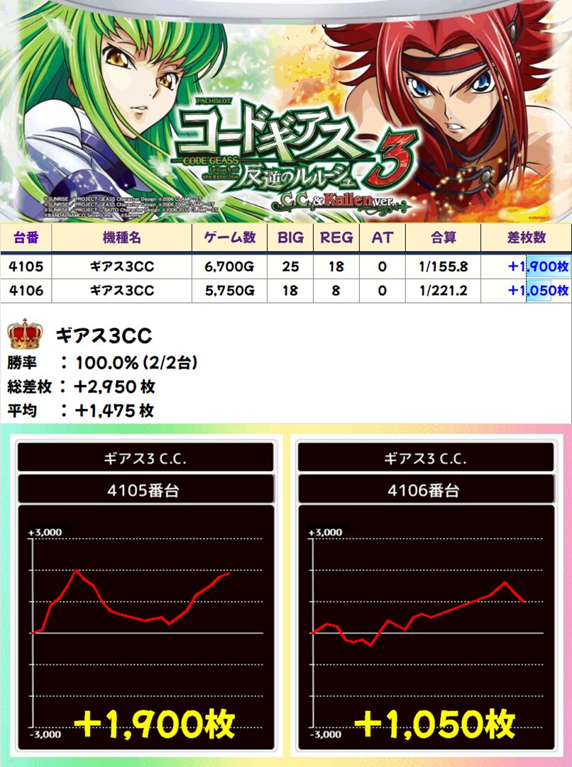 ギアス3CC(2/2台+)➡平均+1,475枚