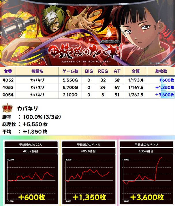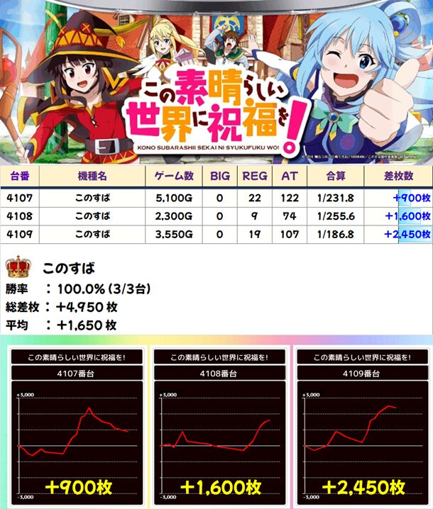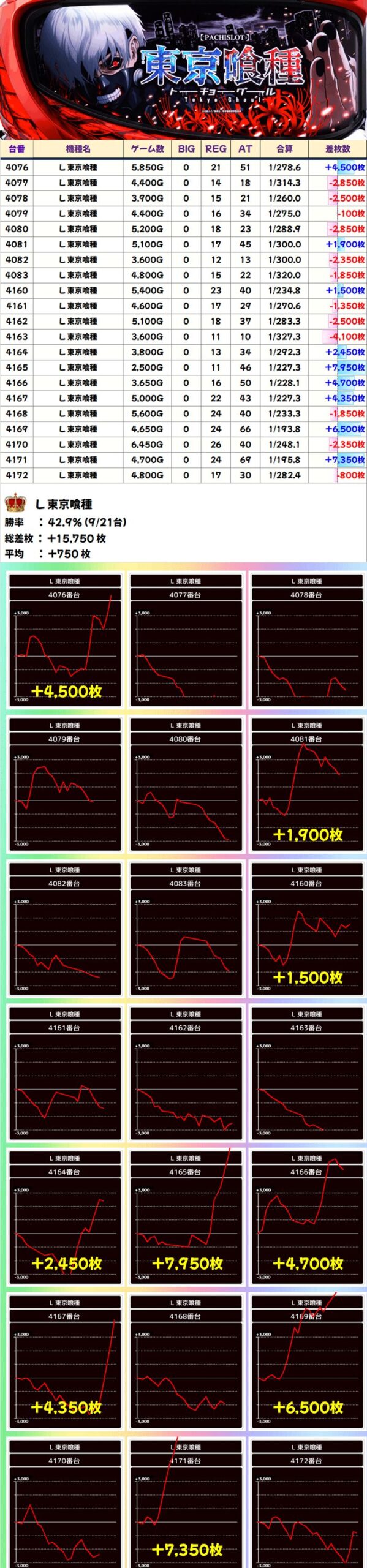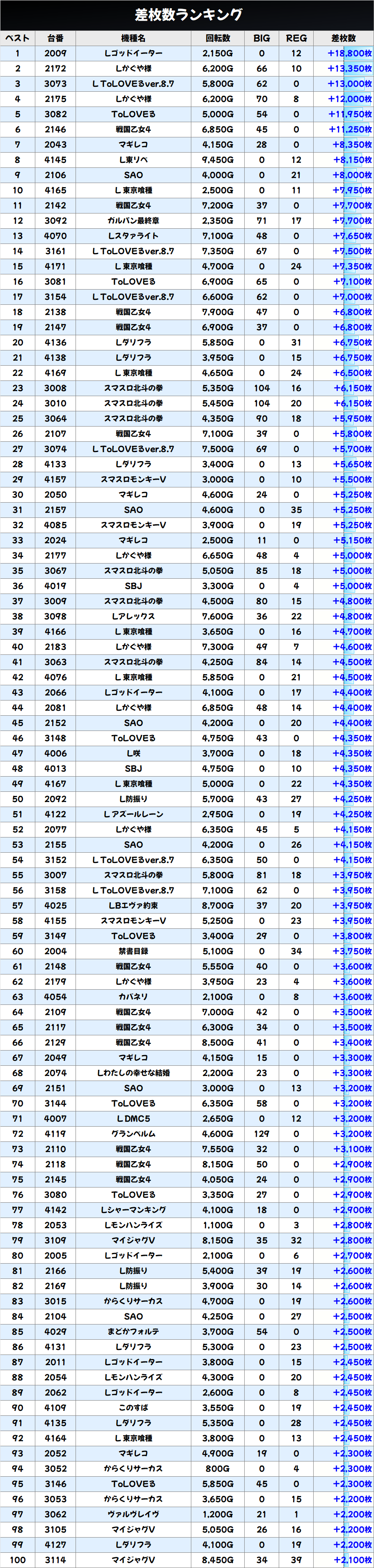 この日は総差枚+198,300枚、平均+382枚の好成績に!それでは本日の結果を見ていきましょう!