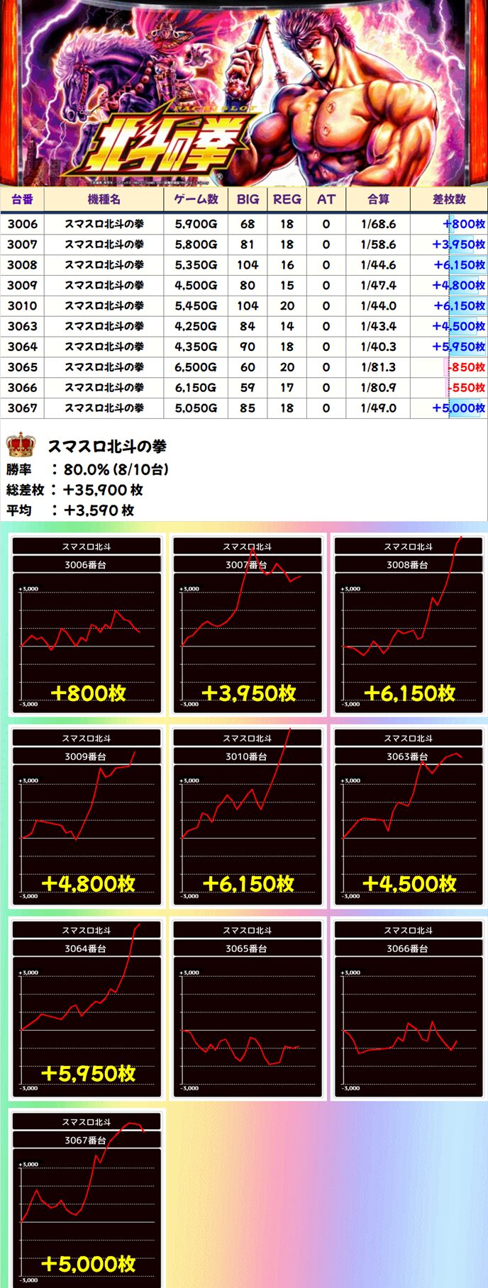 スマスロ北斗の拳(8/10台+)➡平均+3,590枚