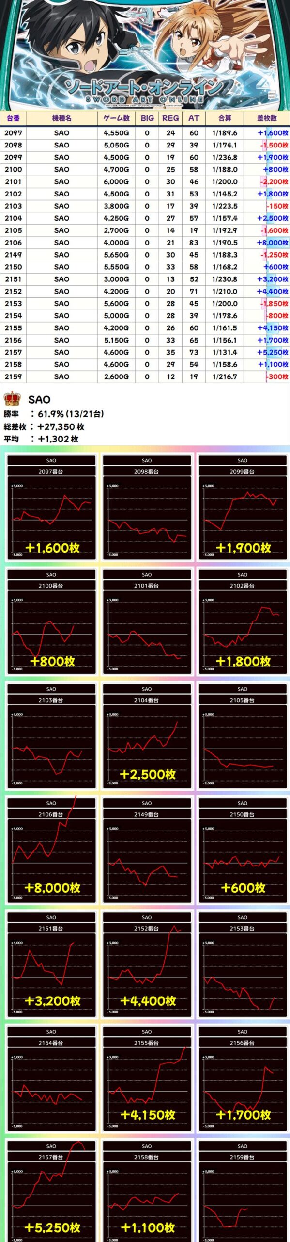 神3機種は同店の看板機種で、とにかく迷ったらここを狙えばOK。競争率もなかなかな高さですが、SAO・かぐや様なら良番じゃなくとも座れる可能性あり!本日はSAOの主人公キリトの声優である松岡 禎丞さんの誕生日でもありました。