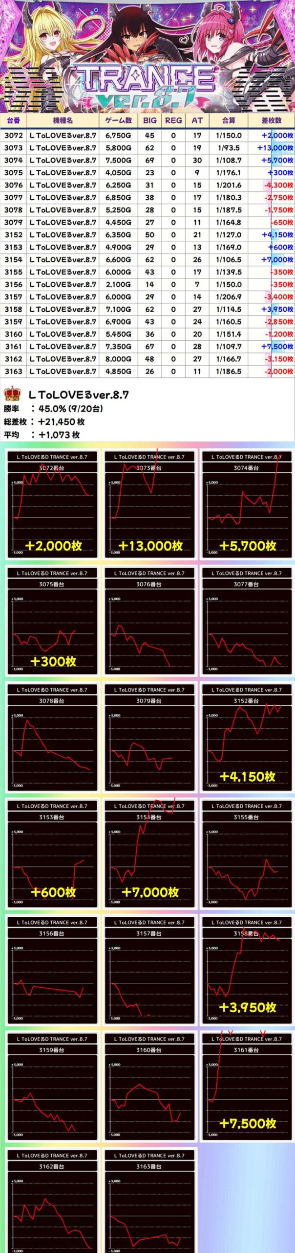 L ToLOVEるver.8.7(9/20台+)➡平均+1,073枚