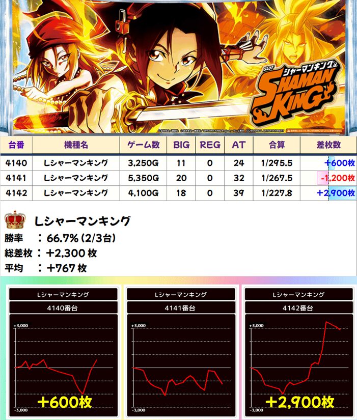 Lシャーマンキング(2/3台+)➡平均+767枚