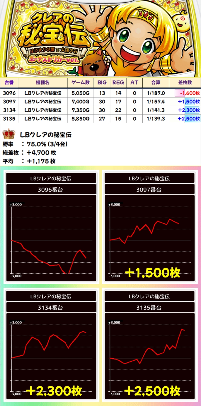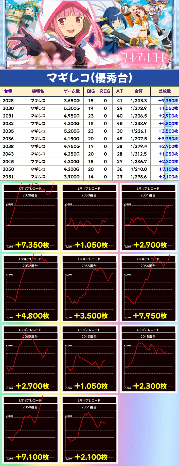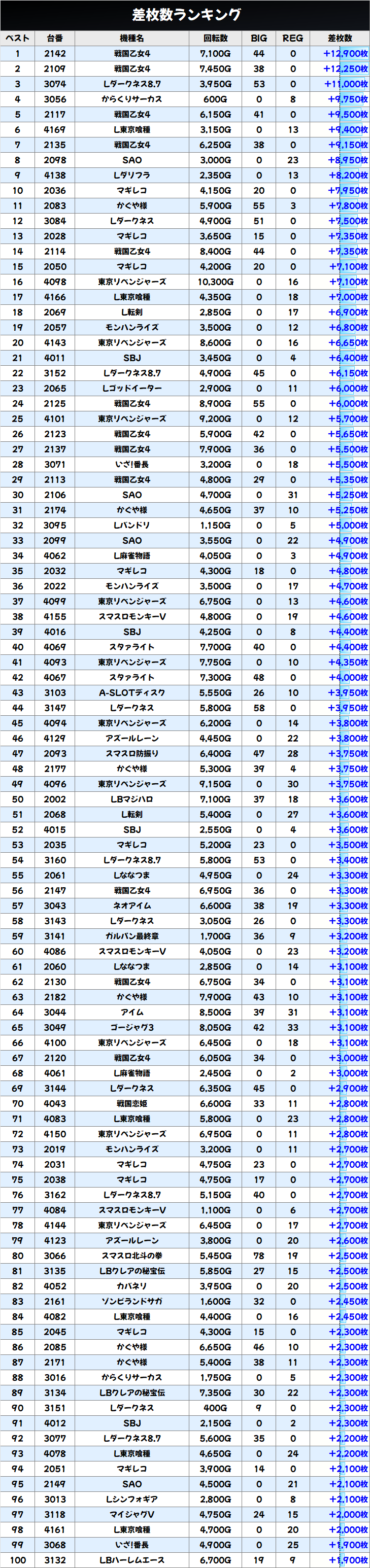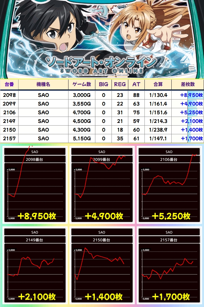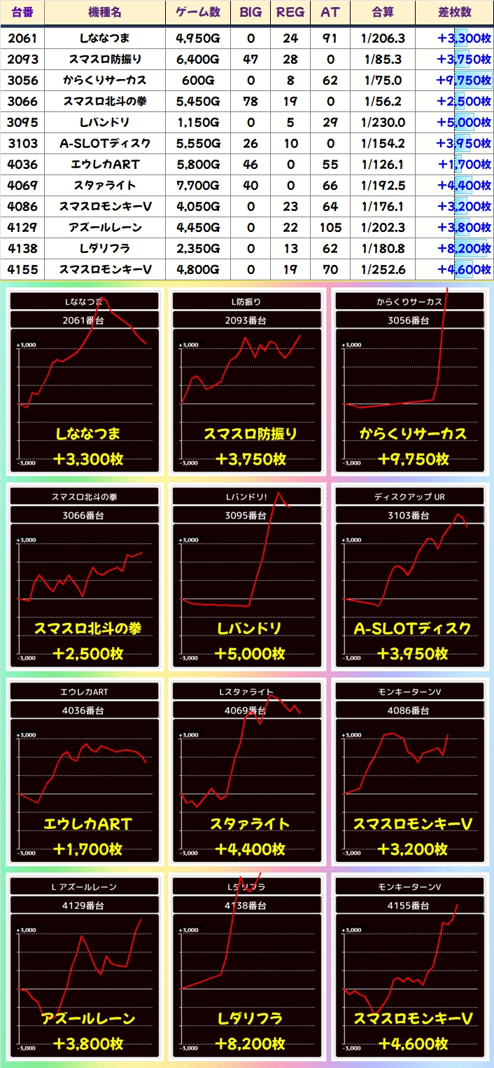 また、その他の3機種からも+5000枚オーバーの爆出し台を複数確認することができました!