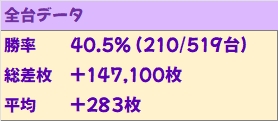 総差枚+14.7万枚、平均+283枚と大幅プラスを記録!