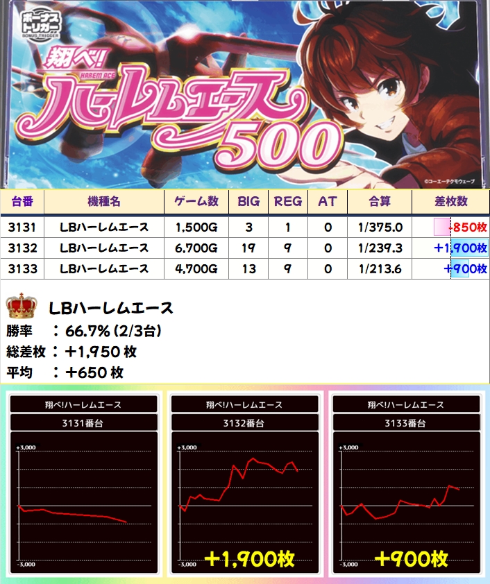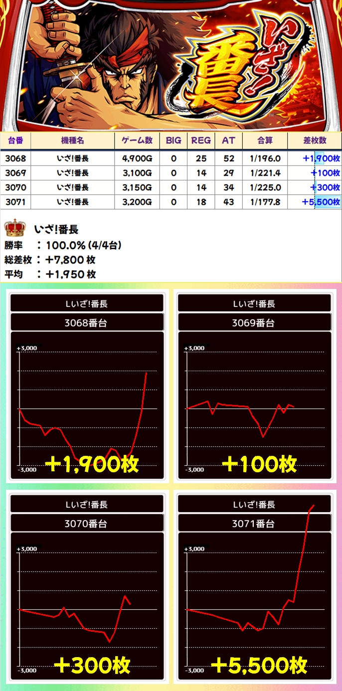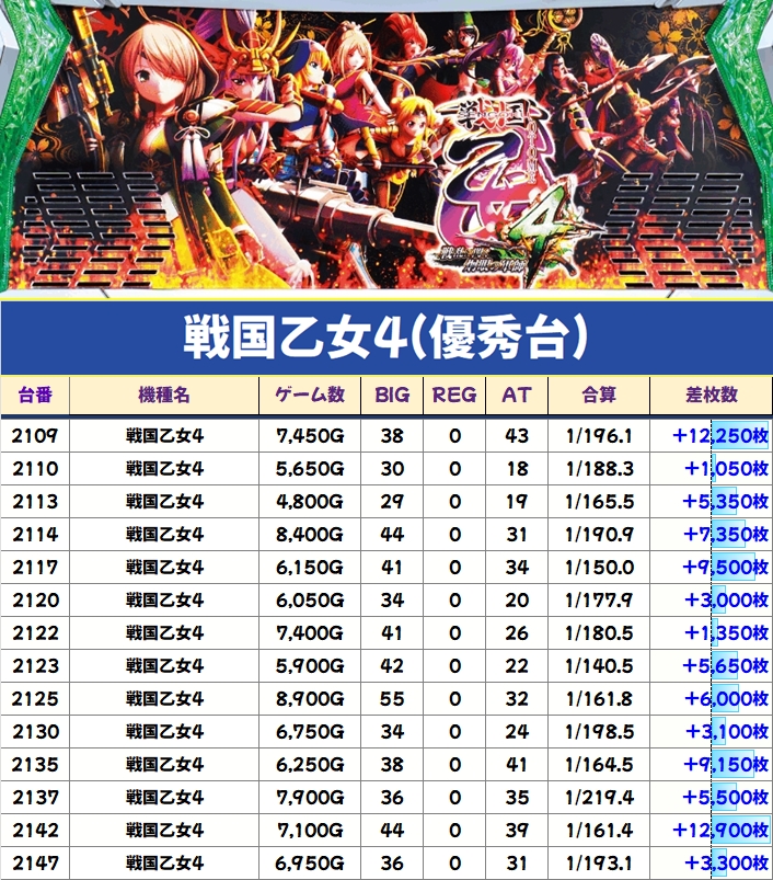 特に戦国乙女4が強い特徴があり、今回も平均+1000枚超の優秀成績!