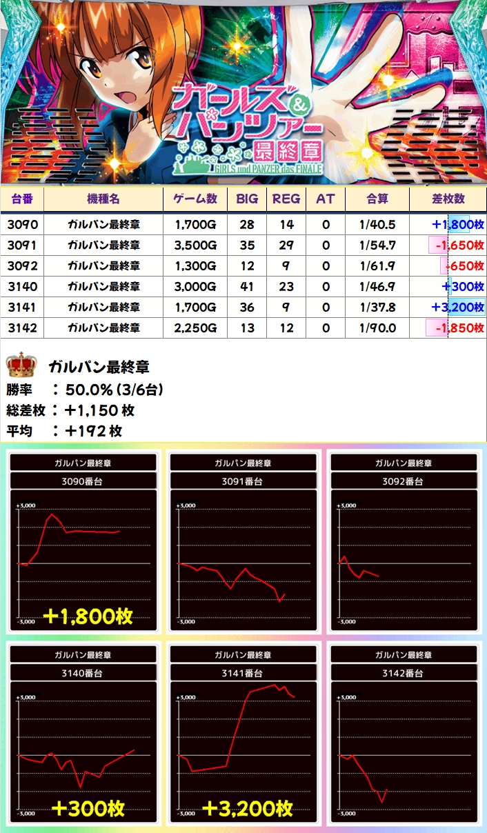 【誕生日機種】ガルパン最終章(3/6台+)→平均+192枚