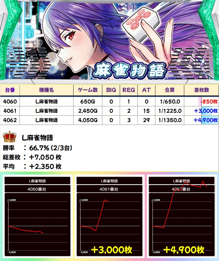 【1/2系濃厚】麻雀物語(2/3台+)→平均+2350枚