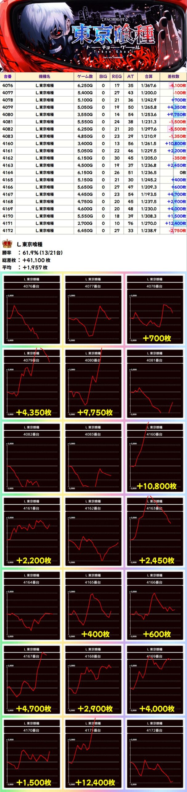 L 東京喰種(13/21台+)➡平均+1,957枚