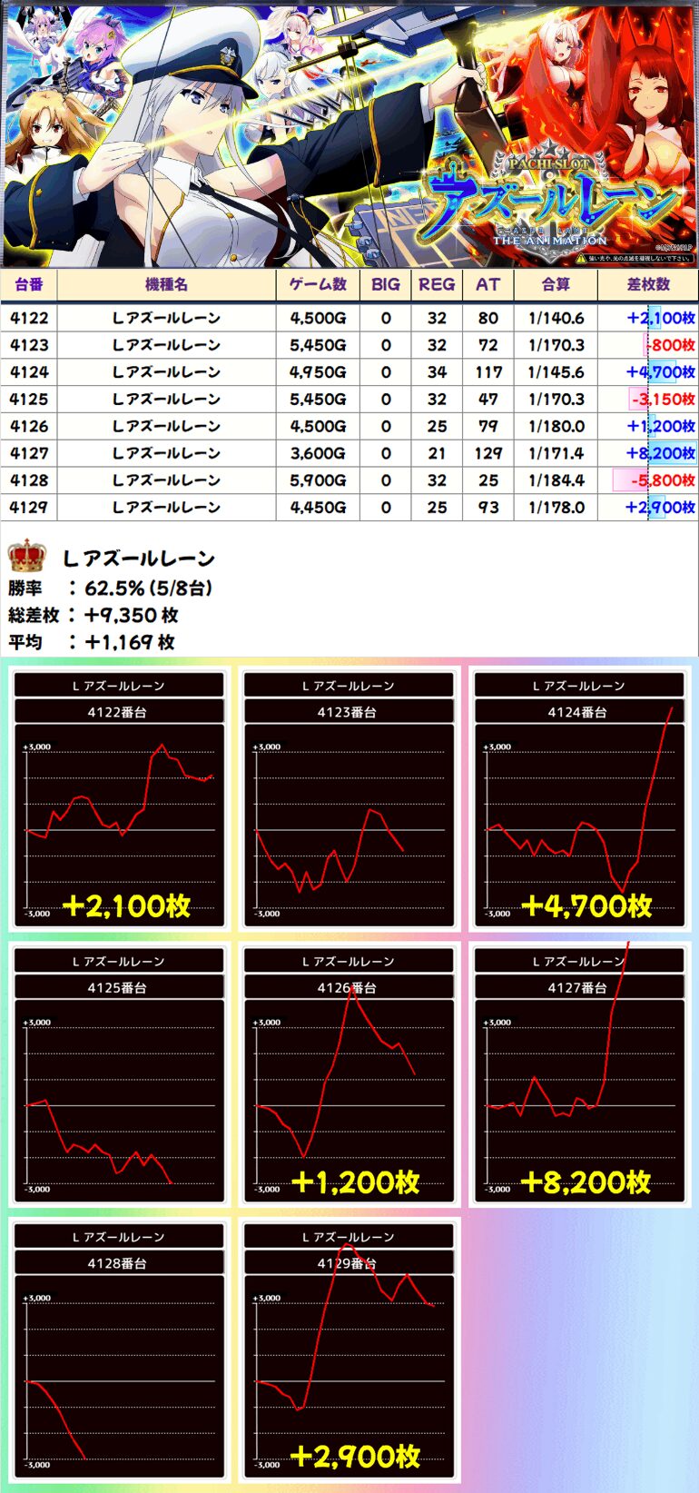 L アズールレーン(5/8台+)➡平均+919枚