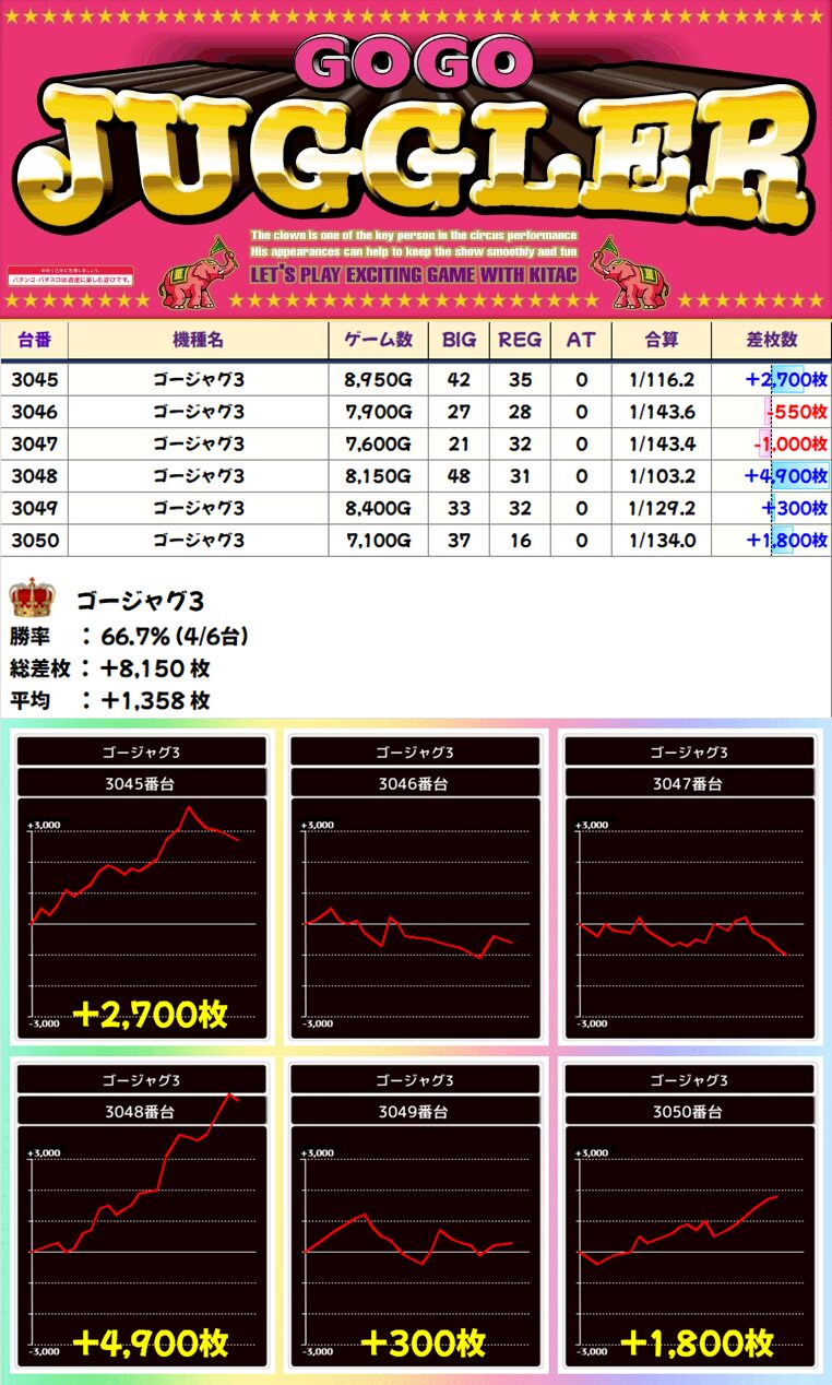 ゴージャグ3(4/6台+)➡平均+1,358枚