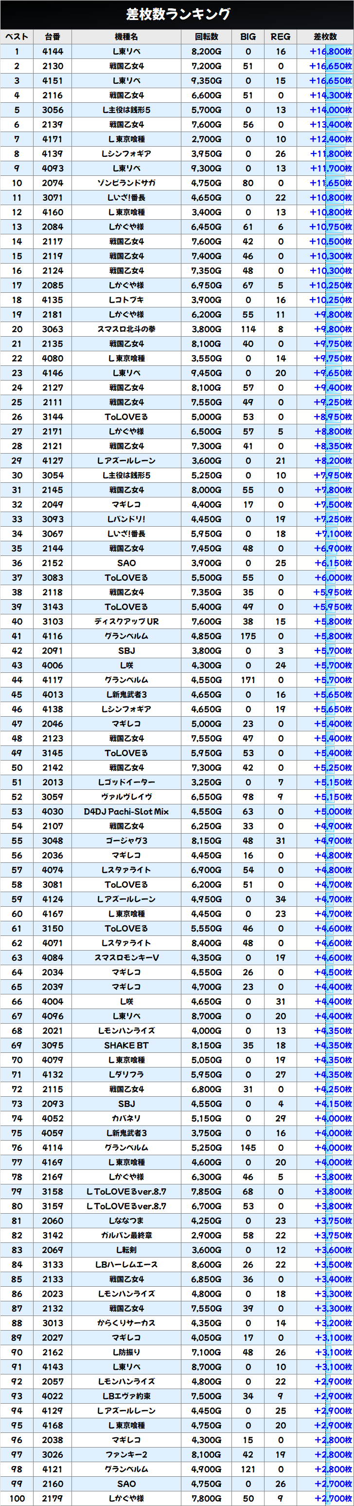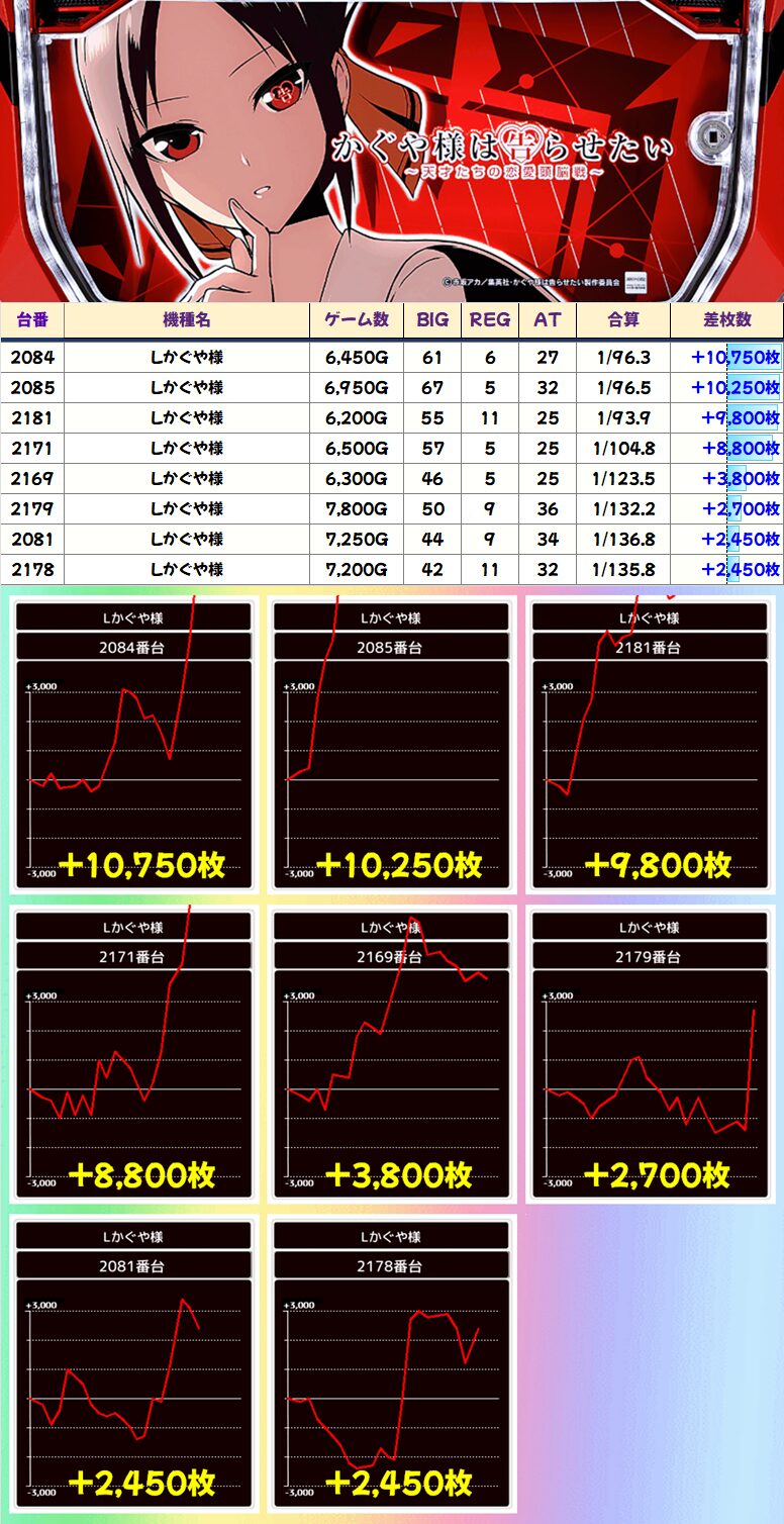 Lかぐや様(10/29台+)優秀台ピックアップ