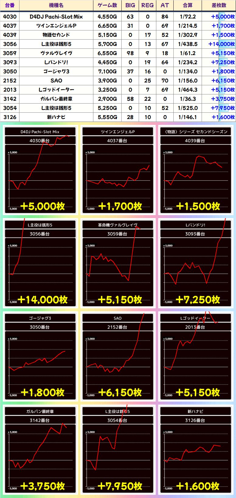 本日は年に1度の周年日ということで全機種全台が狙い目となったことでしょう。そのなかでもやはりアキバらしい機種にスポットがあたったのではないでしょうか?それでは今回の結果をまとめていきましょう!