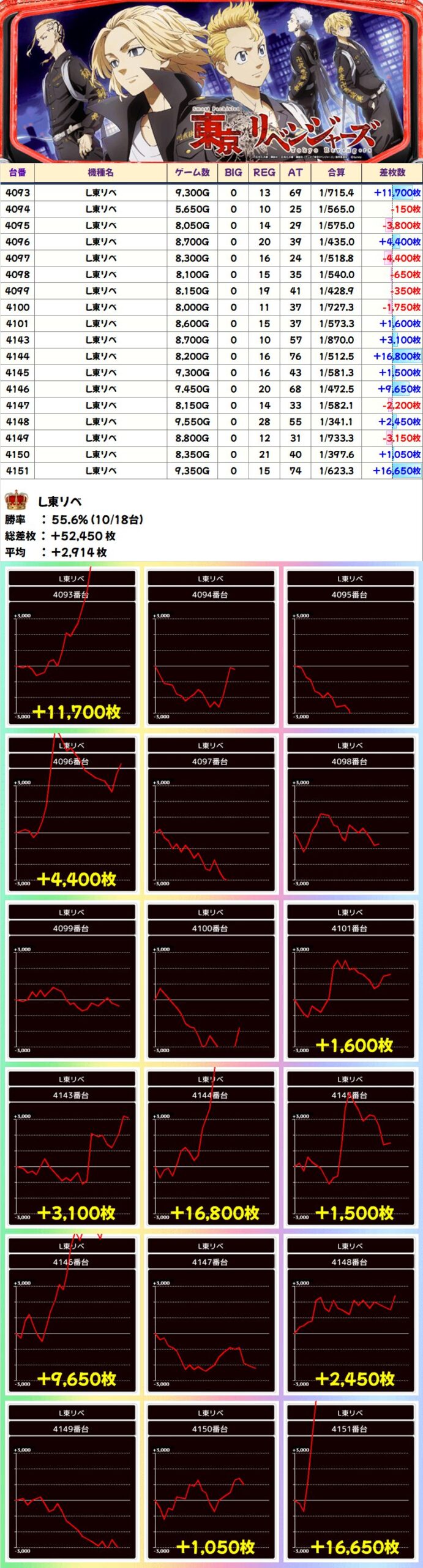 L東リベ(10/18台+)➡平均+2,914枚