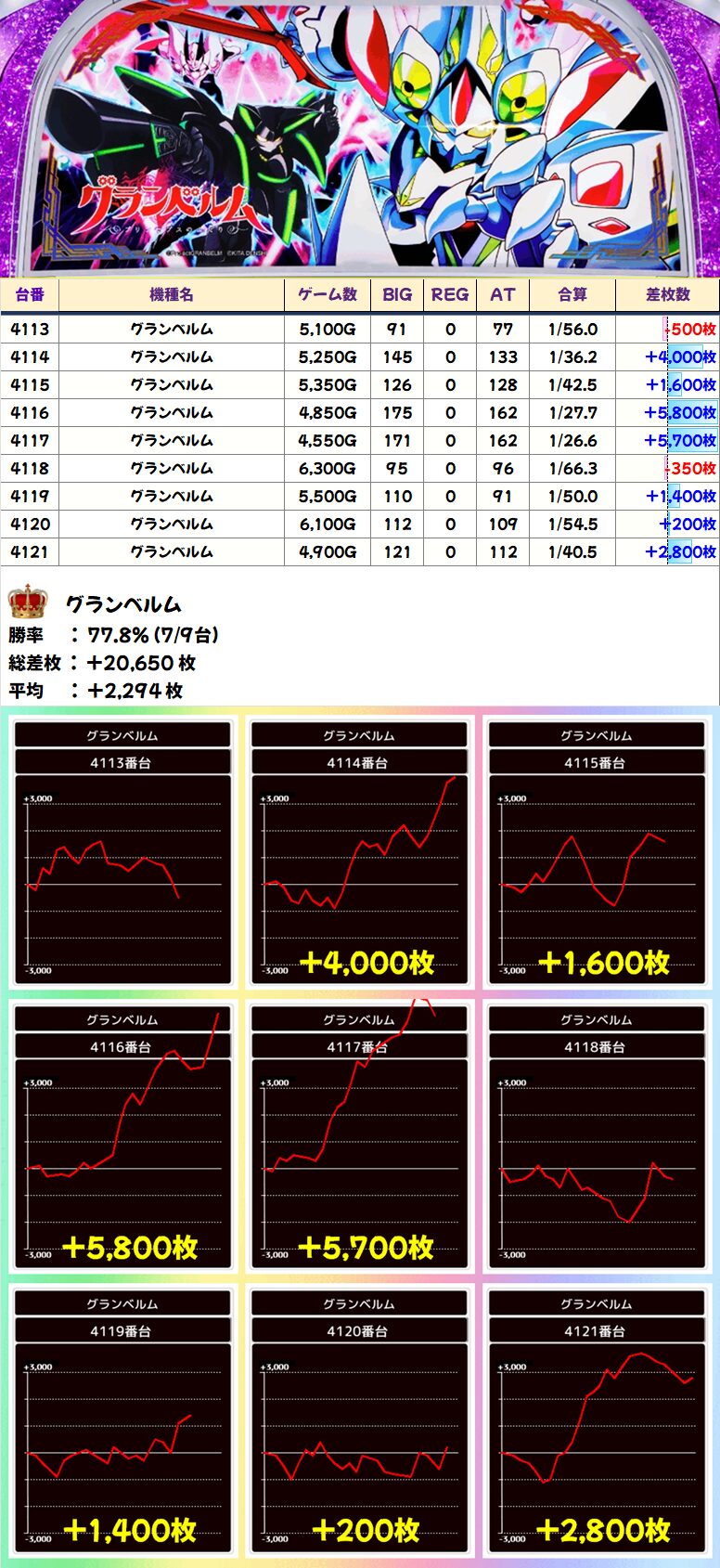 グランベルム(7/9台+)➡平均+2,294枚