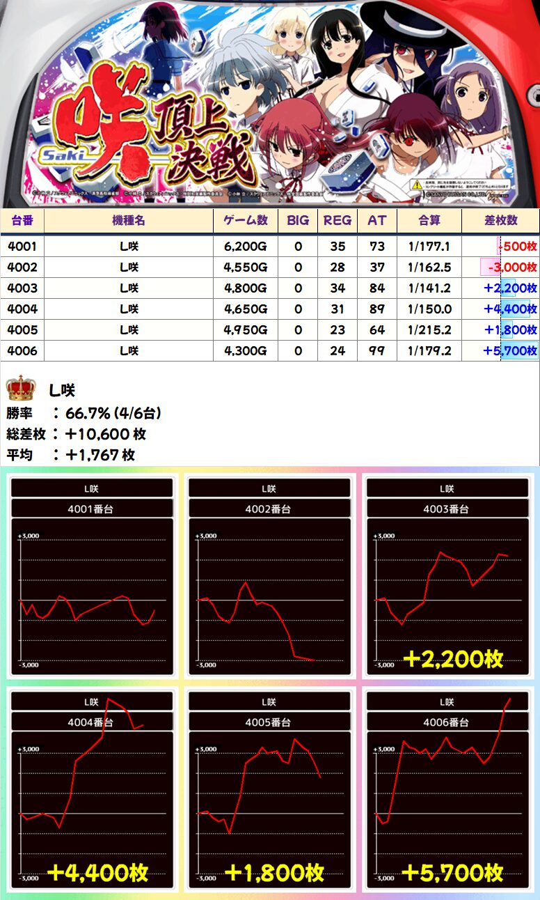 L咲(4/6台+)➡平均+1,767枚