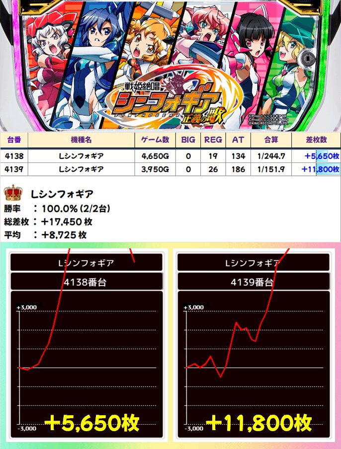 Lシンフォギア(2/2台+)➡平均+8,200枚