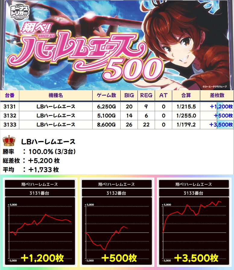 LBハーレムエース(3/3台+)➡平均+1,700枚