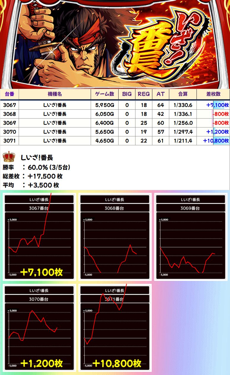 Lいざ!番長(3/5台+)➡平均+3,600枚