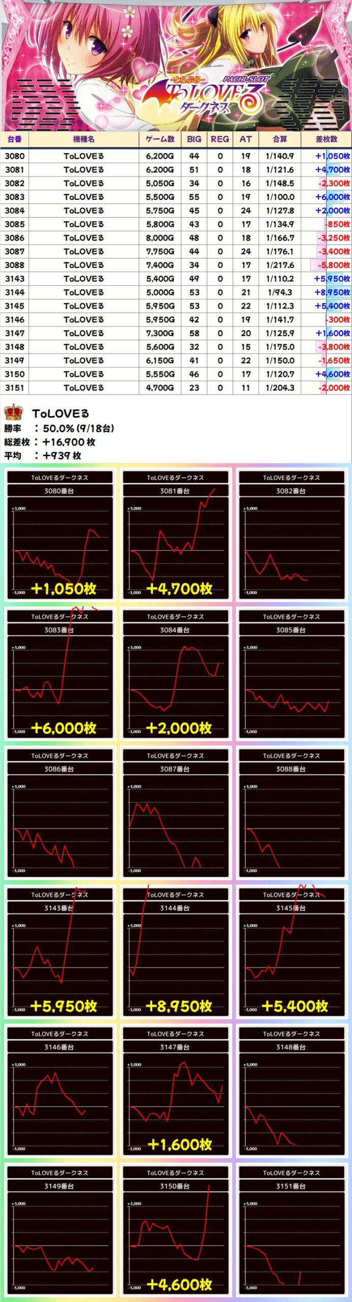 ToLOVEる(9/18台+)➡平均+939枚