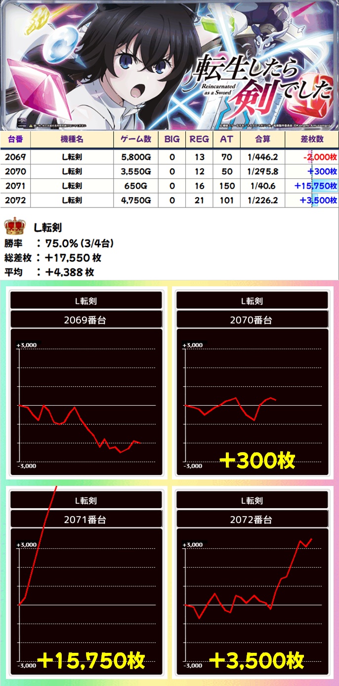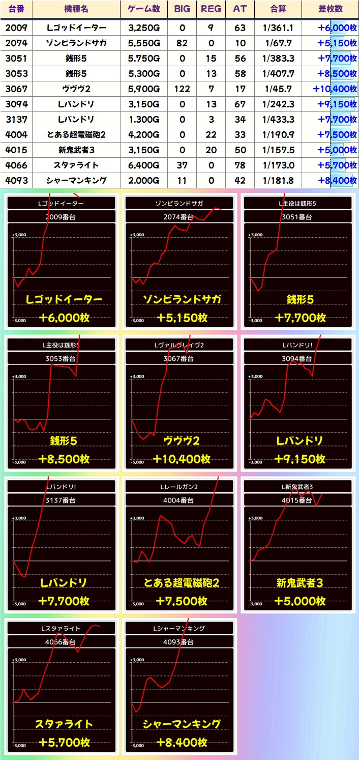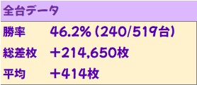 この日は平均+414枚&総差枚+21.4万枚超と期待を裏切らない好結果になりました!