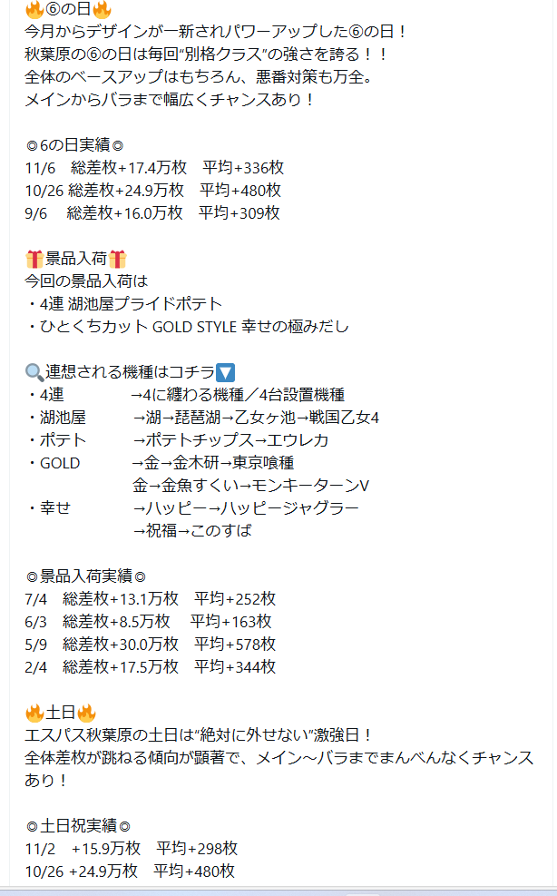 この日は⑥の日である上に土日や景品入荷など秋葉の強い日が重なりました!