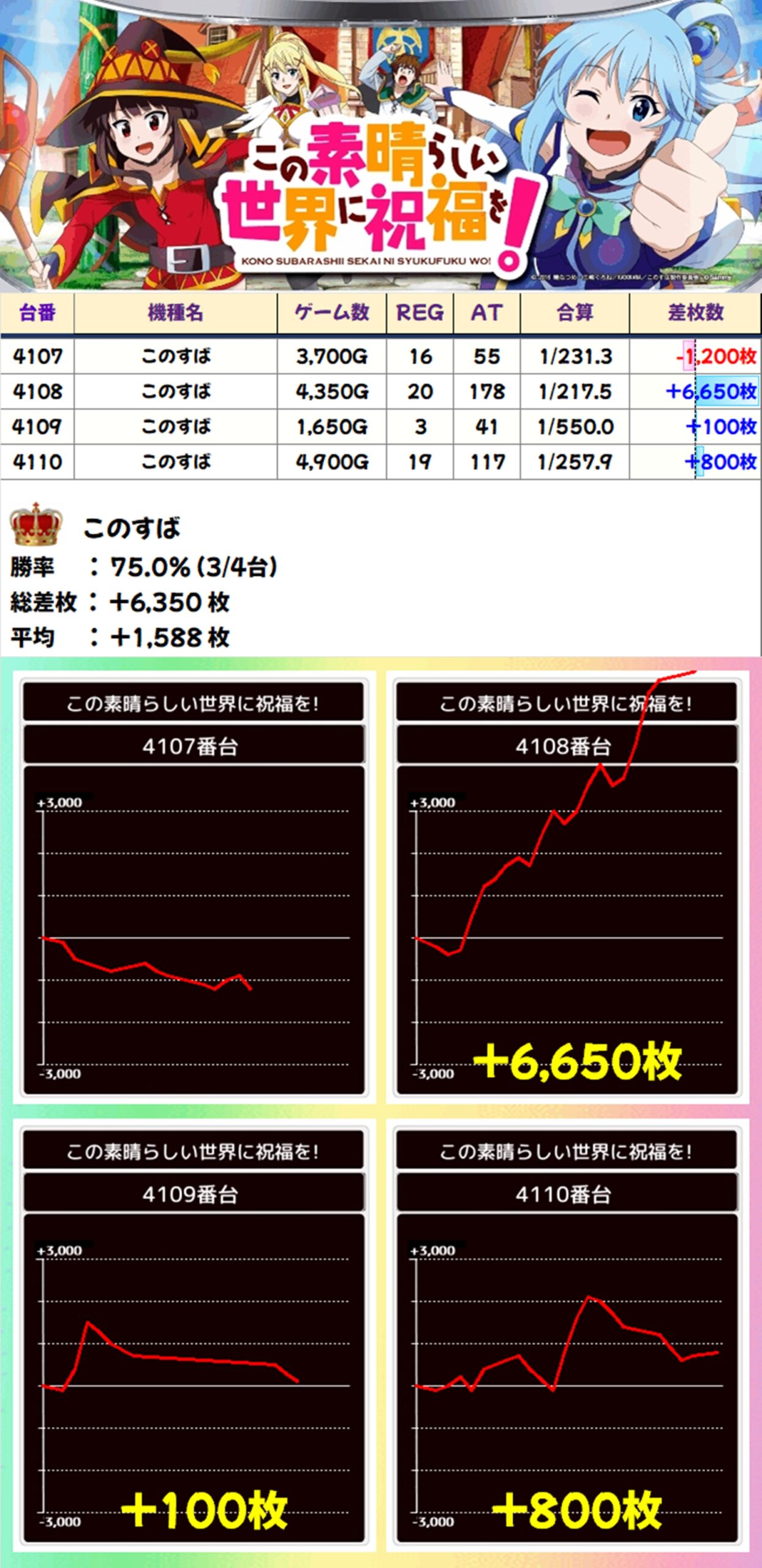 【高配分濃厚】このすば(3/4台+)→平均+1,588枚