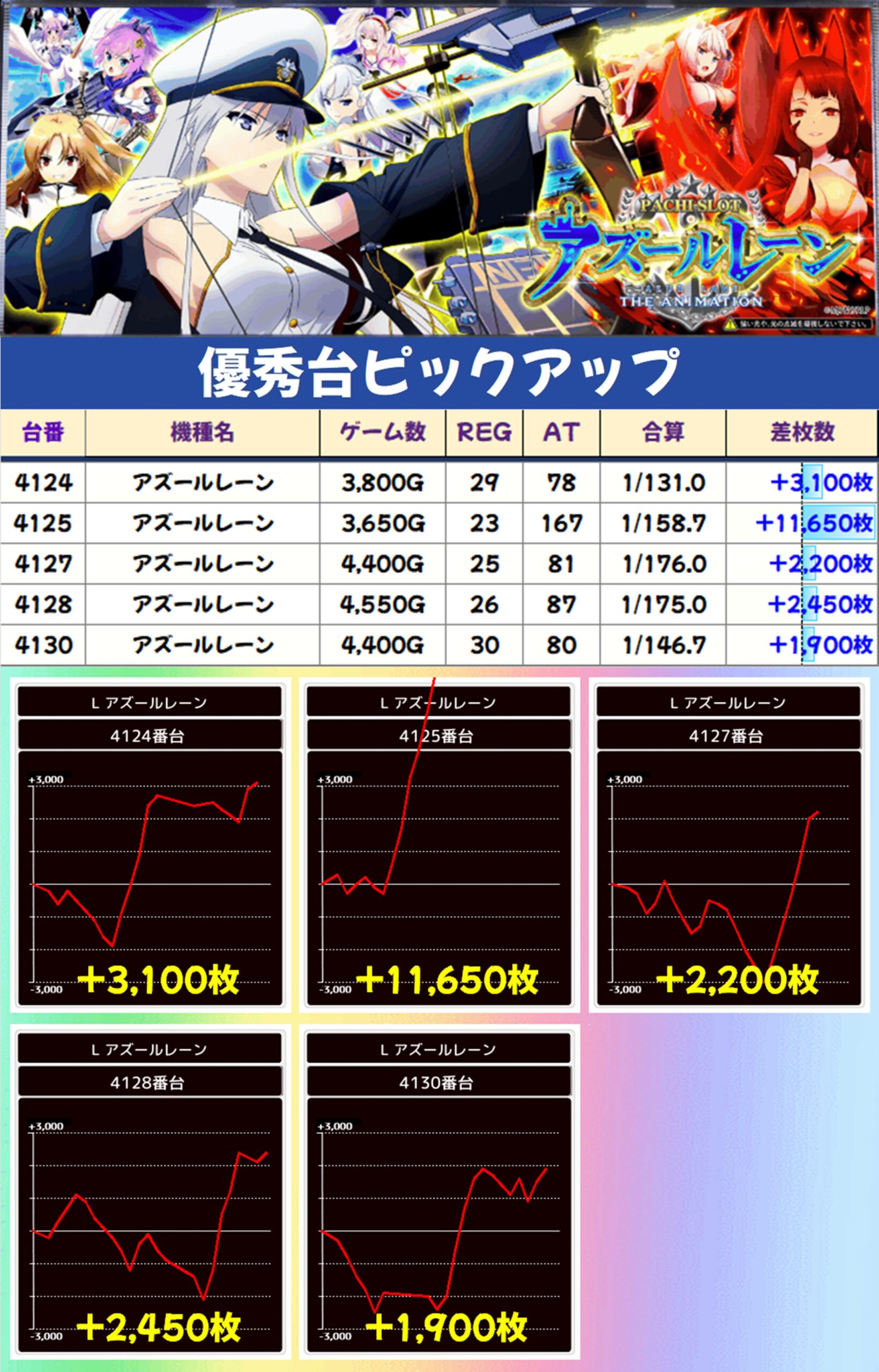 アズールレーン(5/10台+)→平均+1,135枚 優秀台ピックアップ