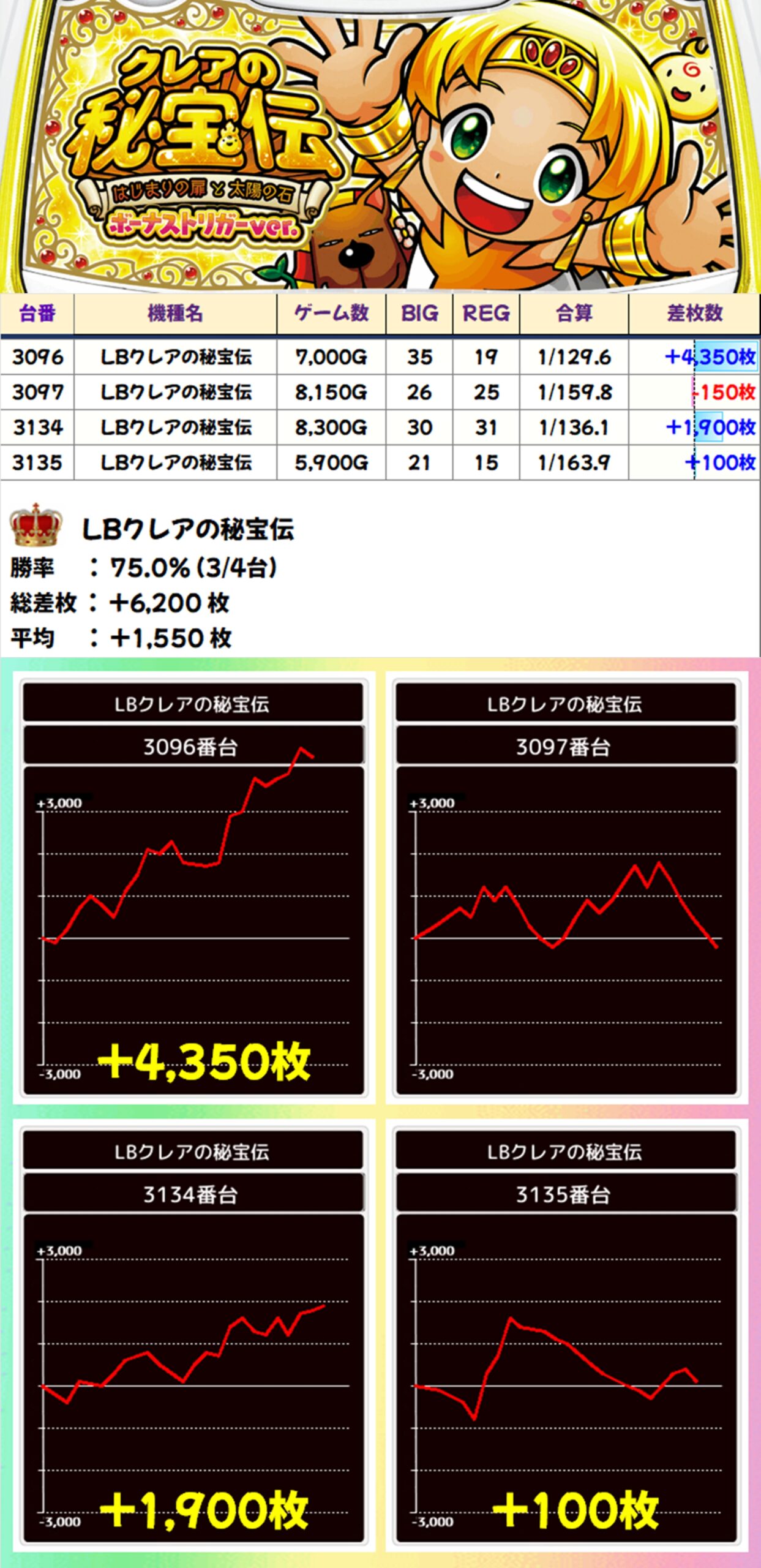 【全台系濃厚】LBクレアの秘宝伝(3/4台+)→平均+1,550枚