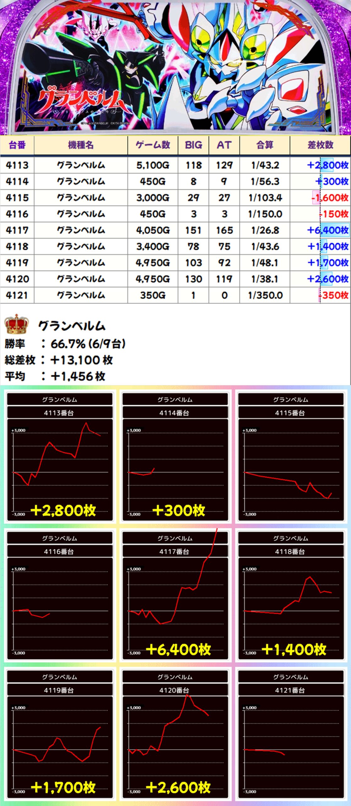 【高配分濃厚】グランベルム(6/9台+)→平均+1,456枚