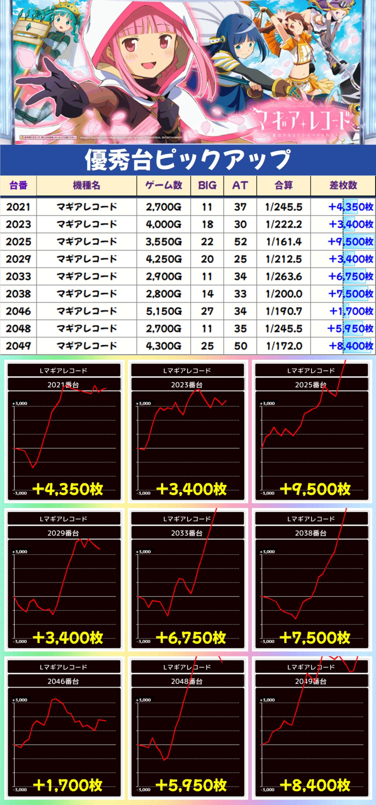 マギアレコード(20/36台+)→平均+839枚 優秀台ピックアップ