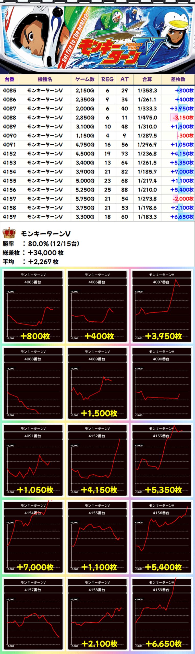 【全台系濃厚】モンキーターンV(12/15台+)→平均+2,267枚