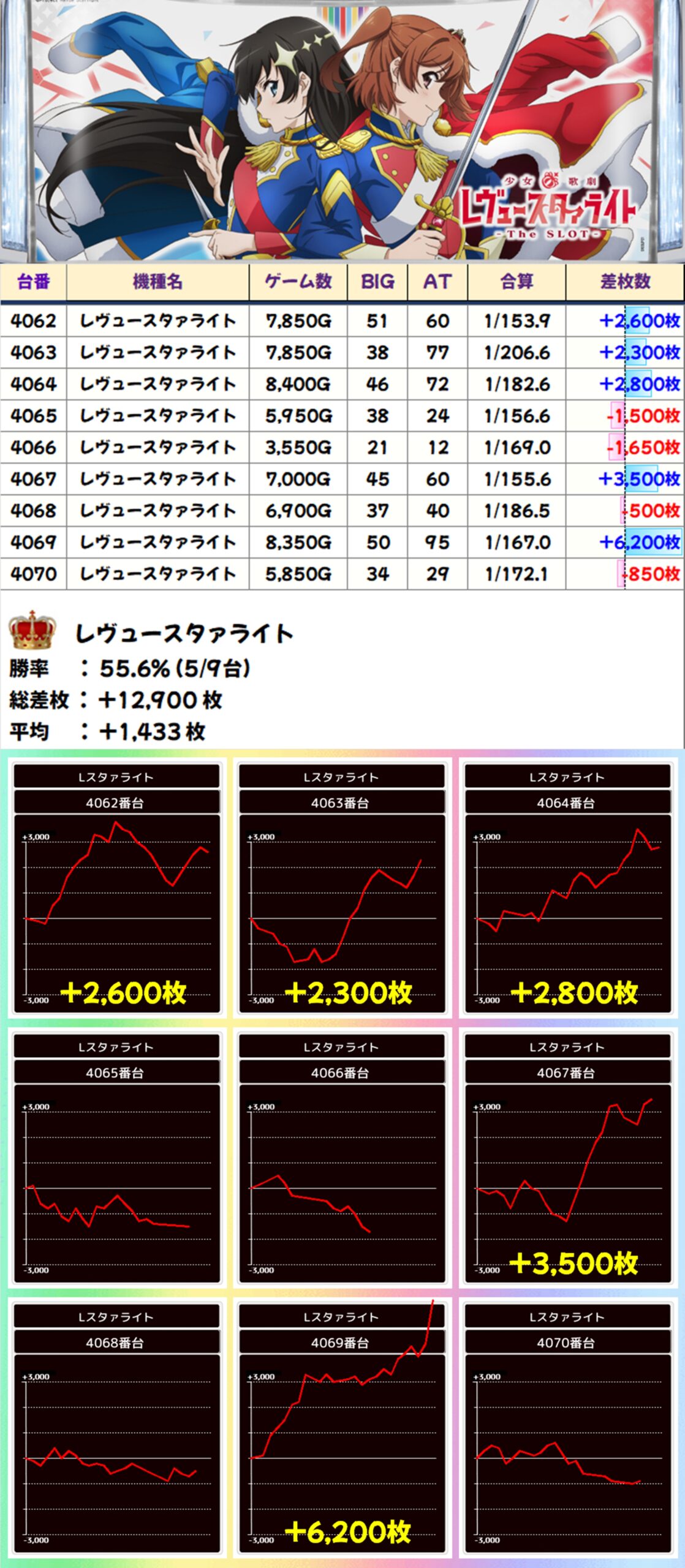 【高配分濃厚】レヴュースタァライト(5/9台+)→平均+1,433枚