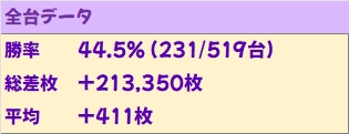 モンキーターンVからは+7000枚や+6650枚などの大量出玉を確認。不発の台はありましたが、平均で+2267枚の好成績を残しました!