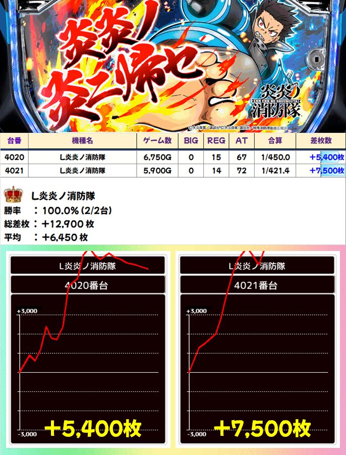 L炎炎ノ消防隊 (2/2台+) ➡平均 +6,450枚